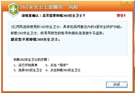 有的读者说了,我就是不听你的,我点对话框上面的“关闭”按钮,取消这个操作,这样总能取消了吧?你自己点一下试试?其实还是停止。明白了么?不管你点击这个对话框中的哪个按钮,其实结果都是360希望你做的。