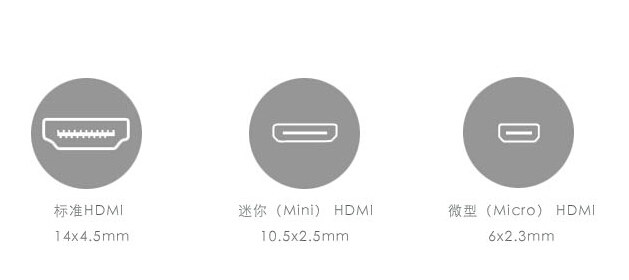 有下面几种型号,外观容易看出来,一般我们用的是标准HDMI接口,买线的时候要注意