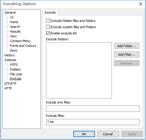 我觉得Everything搜索结果中的快捷方式,没有什么用,下面设置可以不搜索快捷方式