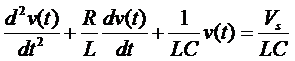 注释:其中v(t)是我们要求解的函数,t是自变量,R、L、C均是数值为正的实常数。这是一个二阶常系数齐次线性微分方程。