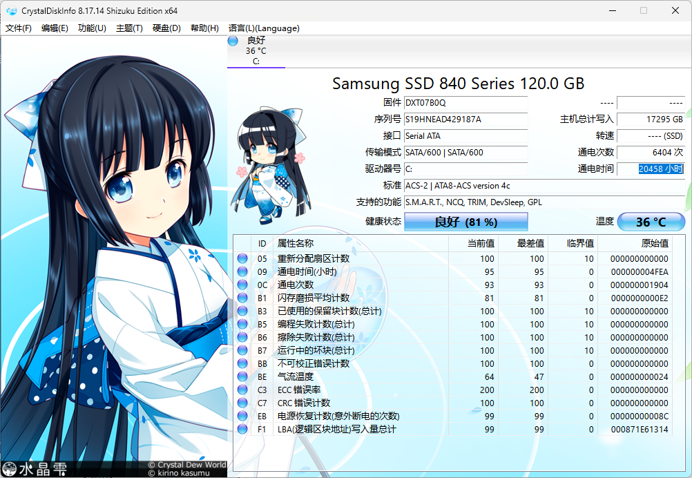 评价:虽然用的比较久,但写入数据不多,健康度还可以。
