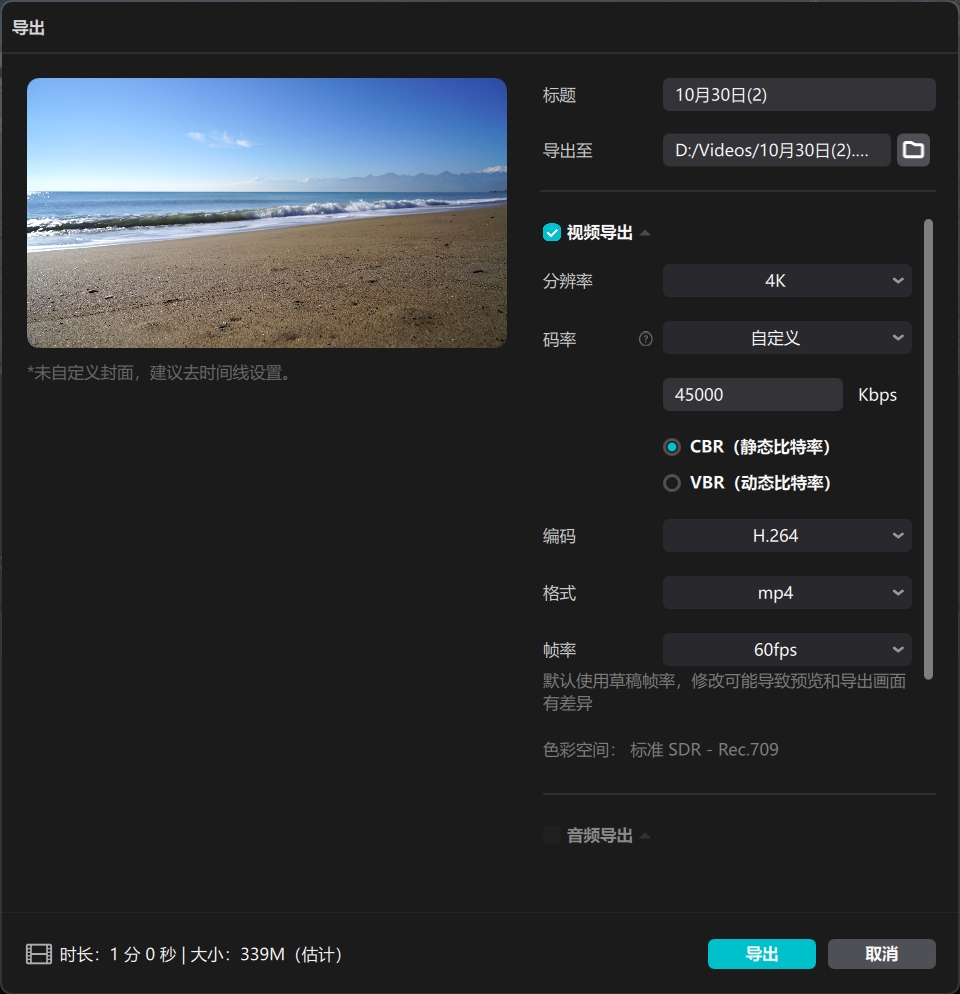 导出 1分钟视频,耗时 50s
