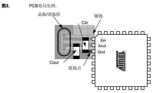 •将晶振和陶瓷谐振腔所需要的外部电容与晶振外壳一同接地(该条附原文:Connect the external capacitors needed for the crystal and the ceramic resonator operation as well as the crystal housing to the ground plane).